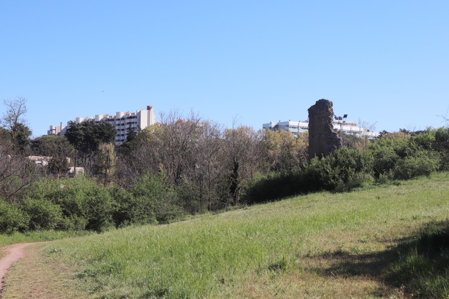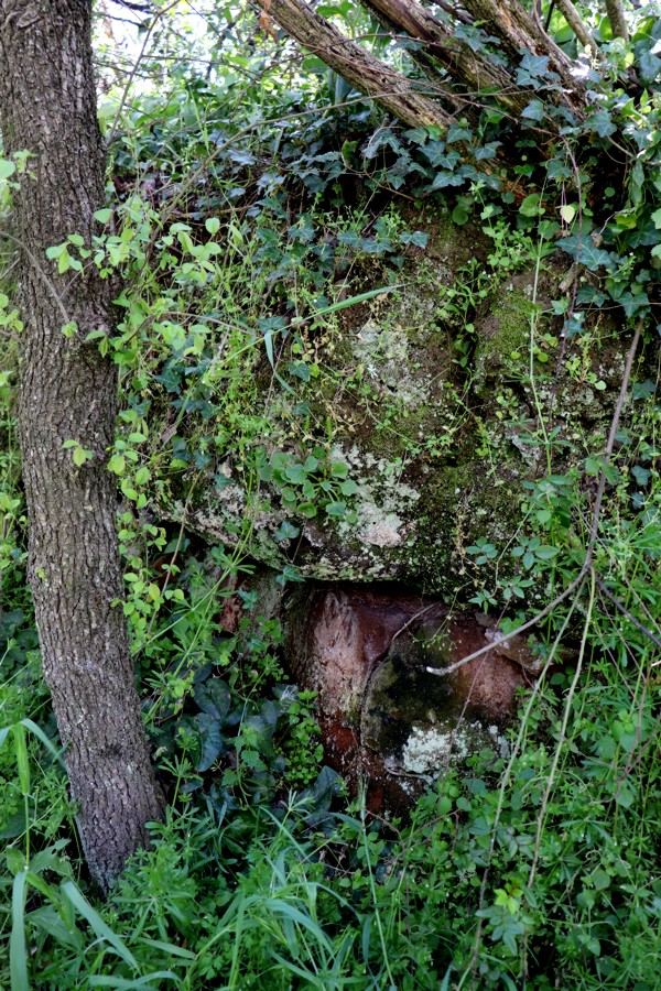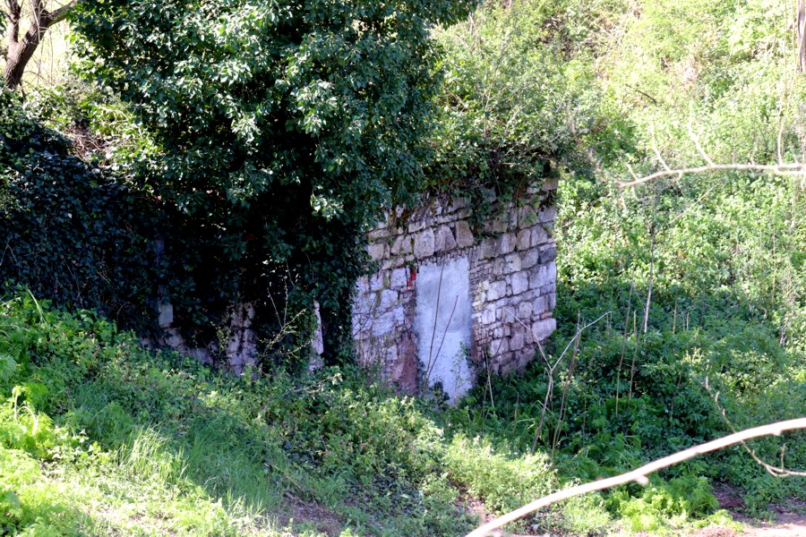 tale da formare una specie di muraglione, coperto, per la maggior parte, dalla vegetazione. Un altro manufatto mischiato a parte di mattoni appartiene allo stesso genere di antica fabbricazione.
