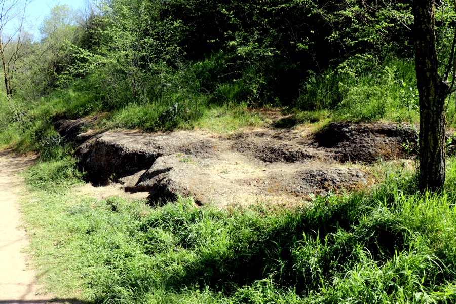 Tornando verso dove siamo partiti abbiamo effettuato una deviazione per entrare in una parte di bosco all'interno del quale si trova il "Sentiero dei Tufi". C'è infatti un conglomerato pietroso che potrebbe essere di tufo suddiviso in modo