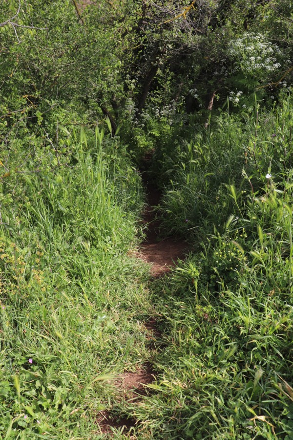Giunti alla sbarra che impedisce, anche da quel lato, il passaggio di mezzi motorizzati, siamo scesi sul sentiero che porta al Castello. A poca distanza da lì individuiamo il viottolo che, stando alla mappa, dovrebbe portare alla grotta.