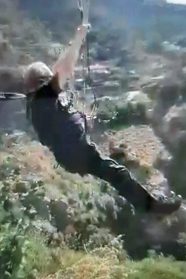 Un fotogramma del video che mi riprende sulla Zip Line ovvero il Volo dell'Angelo.