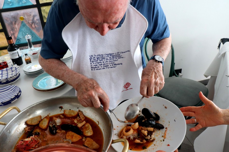 Pur avendo cucinato tante ricette di Donna Erminia Cuomo, la Zuppa di Pesce non avevamo mai voluto farla quasi fosse un sacrilegio; volevamo che l'incontro con questa vivanda fosse con la versione originale della cucina di Bacco. E così è stato e il risultato più che soddisfacente!