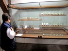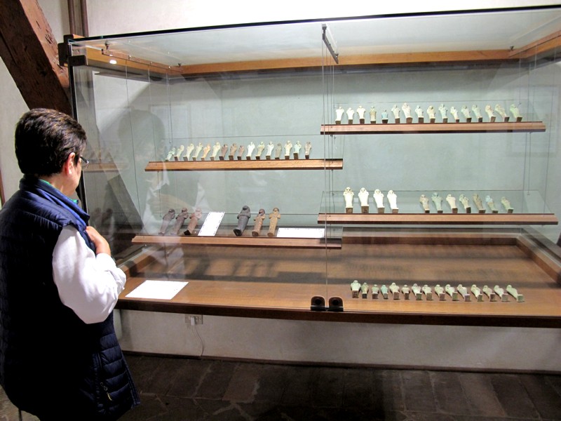 Foto 76/80 - Sezione Egizia. Tiziana osserva i reperti nella vetrina degli «shuebte», statuette