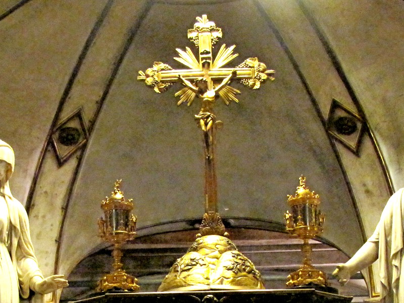 Al di sopra dell'altare il Crocifisso con le copie dei Sacri Vasi.