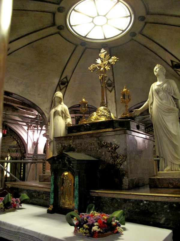 Foto 26/35 - Basilica di S. Andrea. L'altare della Cripta. Le due statue laterali sono quelle della Fede e della Speranza.