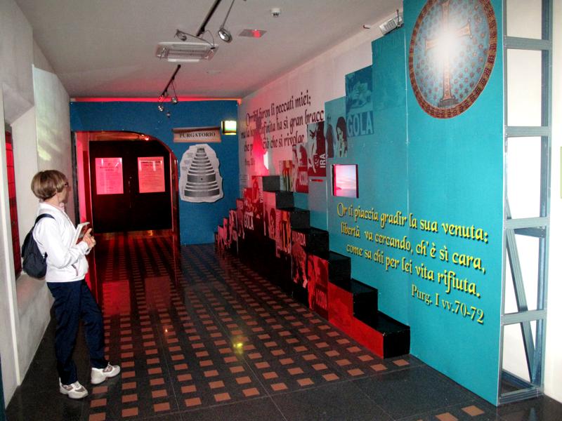 L’esposizione si avvale di numerosi contributi video e di prodotti multimediali, tra i quali le versioni della Commedia in più lingue, in modo da coinvolgere i visitatori di tutte le