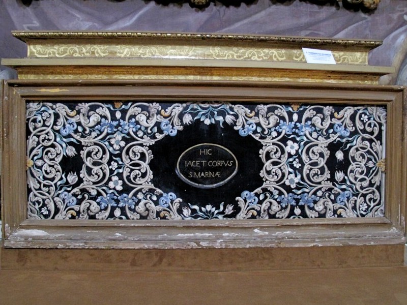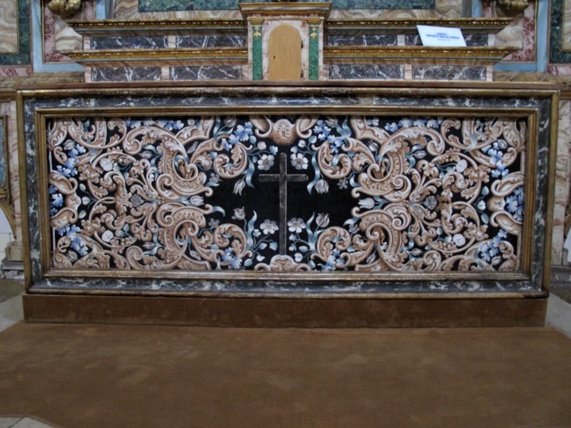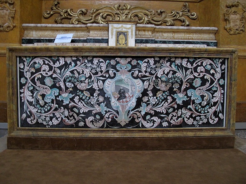 Foto 11/50 - Chiesa di S. Agostino. Interno. Particolare della base dell'altare.