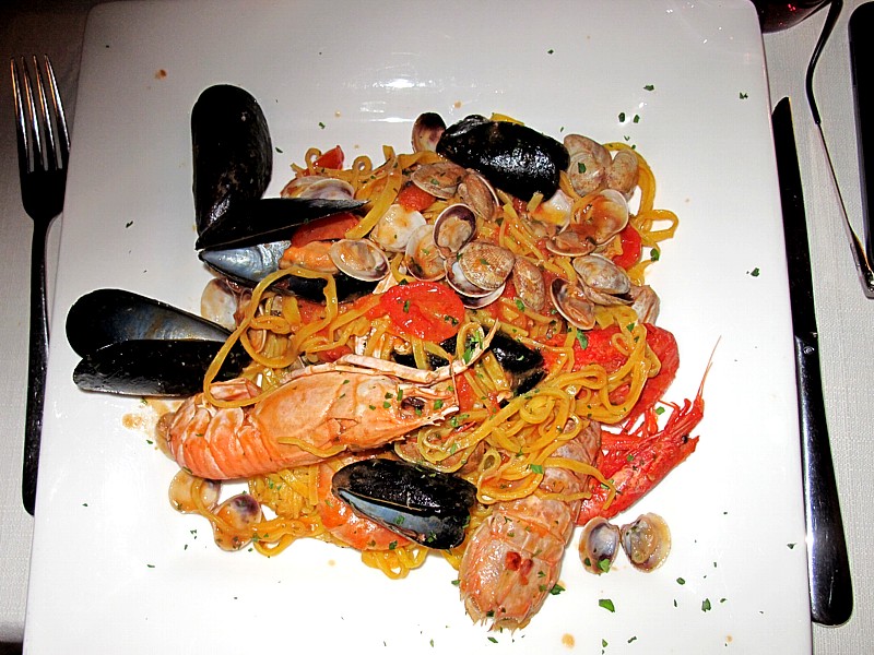 Questo è il famoso piatto "Tagliolini allo Scoglio Reale" consigliatomi da una collega di Trip Advisor, "micaela b", grande esperta di questo locale.