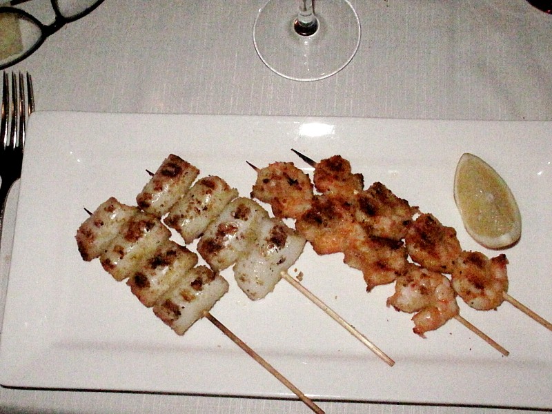 Foto 42/50 - Dopo quel piatto di Tagliolini solo uno "Spiedino di Calamari e Gamberi" avrebbe potuto farmi mangiare ancora, dato che un po' di spazio dovevamo, necessariamente, tenerlo per il dolce.