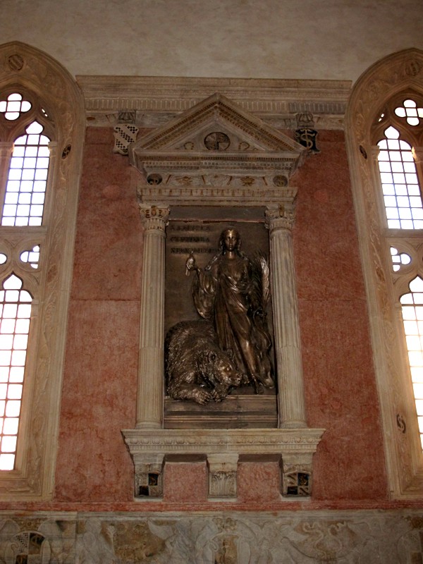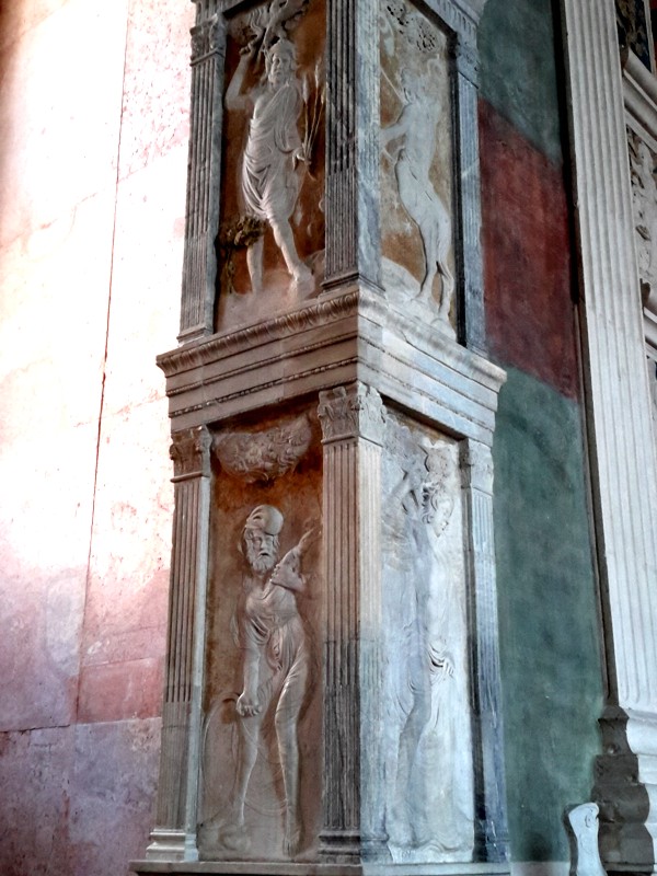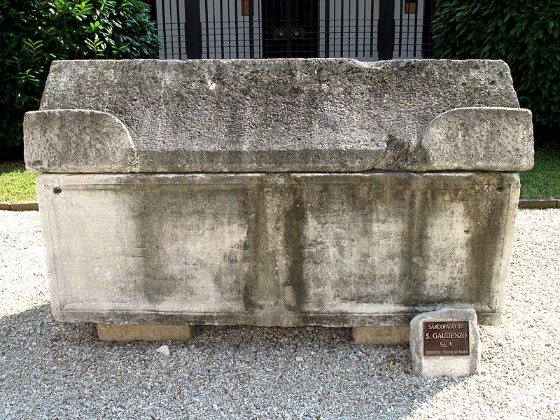 Foto 5/25 - Tempio Malatestiano. Esterno. Il sarcofago di San Gaudenzo, protettore della città.