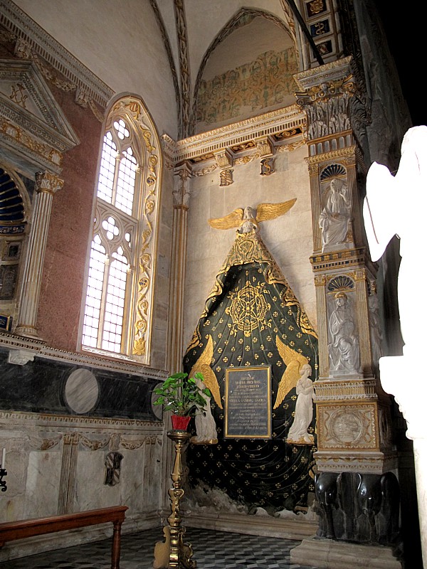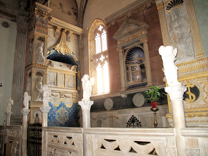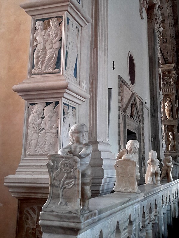 balaustre marmoree, l'armonico equilibrio di ogni sua parte. Oltre al Crocifisso di Giotto, sono di particolare pregio: l'affresco di Le decorazioni si estendono a varie tematiche: vi si esalta l’amore di Sigismondo per Isotta,