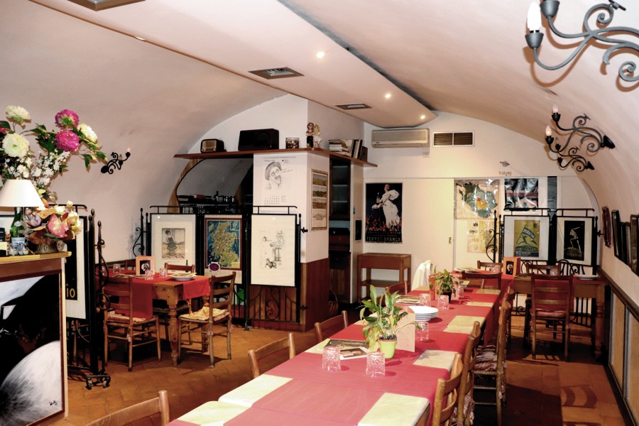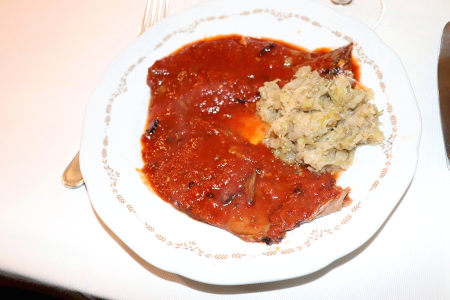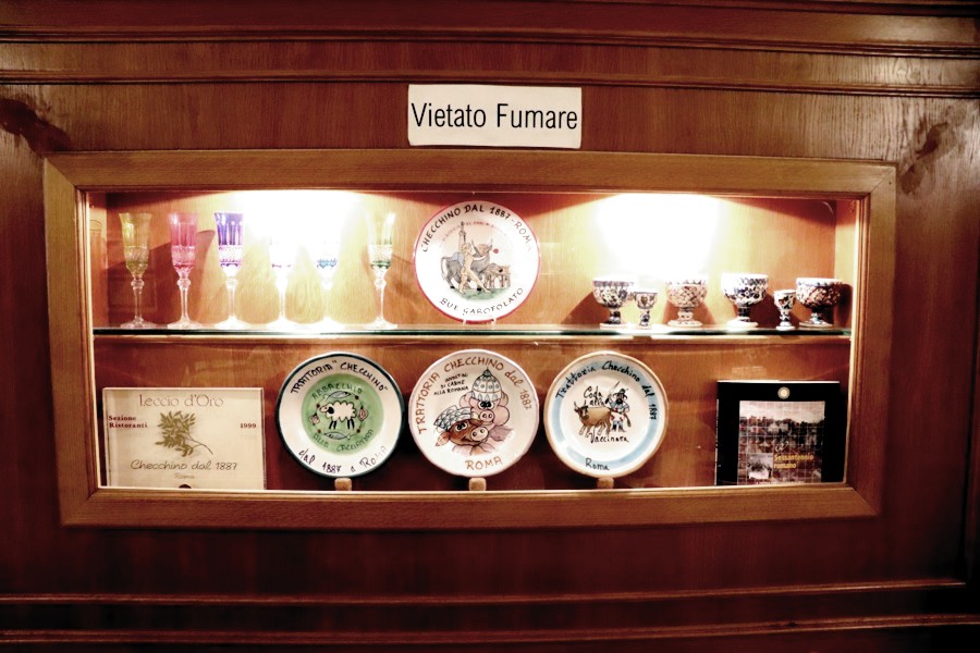 Foto 8/45 - Checchino dal 1887. Interno del ristorante. La vetrinetta con i quattro (fin'ora) piatti del Buon Ricordo commemorativi delle vivande emblematiche del ristorante.