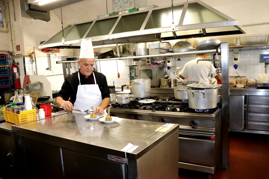 Foto 9/45 - Uno dei cuochi sta "allestendo" i Carciofi alla Romana.