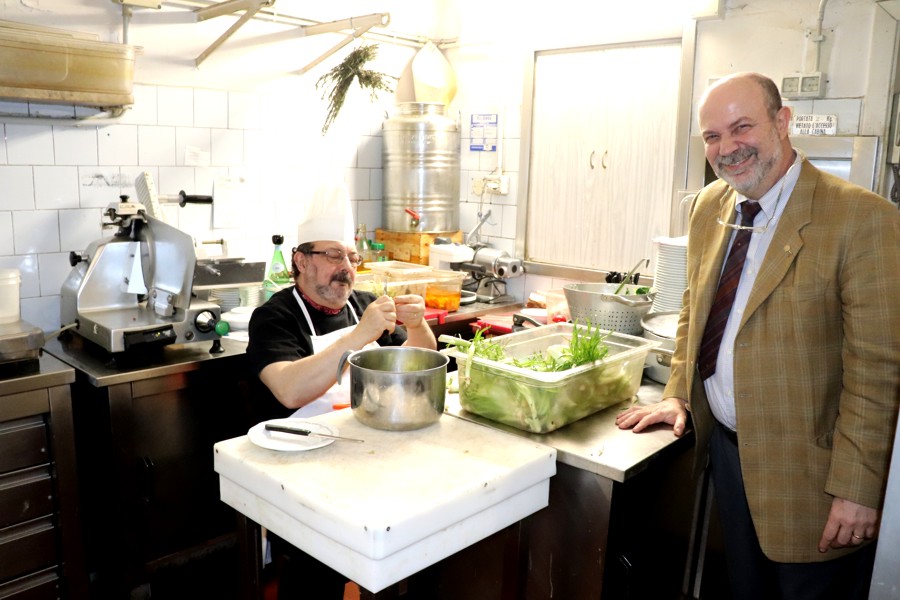 Foto 10/45 - Elio, che sta preparando le puntarelle, e Francesco che ci ha fatto visitare la cucina.
