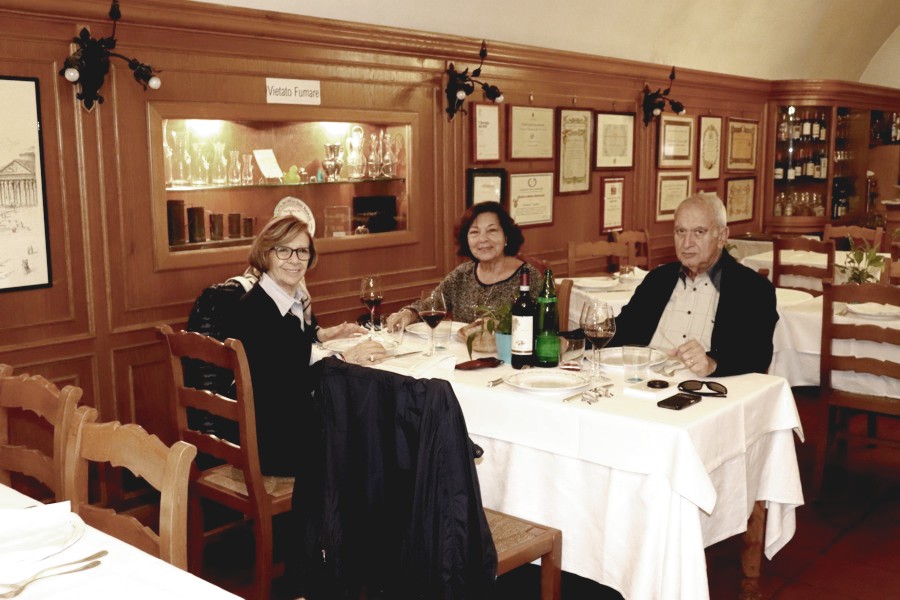 Foto 11/45 - Il nostro tavolo. Fausta, Anna Maria ed Elio il quale non è arrabbiato, come si potrebbe pensare dalla sua espressione, ma soltanto intento a seguire le fasi della foto! ;-))