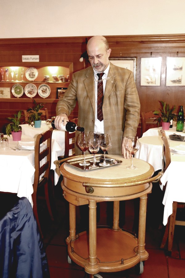 Foto 13/45 - Francesco versa il vino nel calici. Molto originale il carrello porta vassoio da sommellier.
