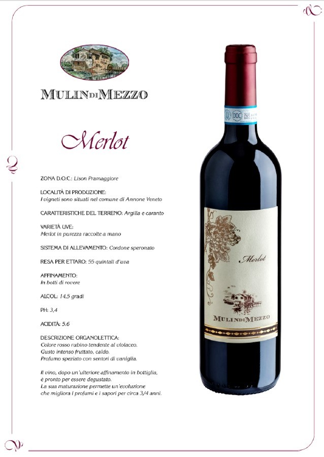 Foto 14/45 - Questa è la scheda completa del Merlot Mulin di Mezzo, una DOCG del 2016.