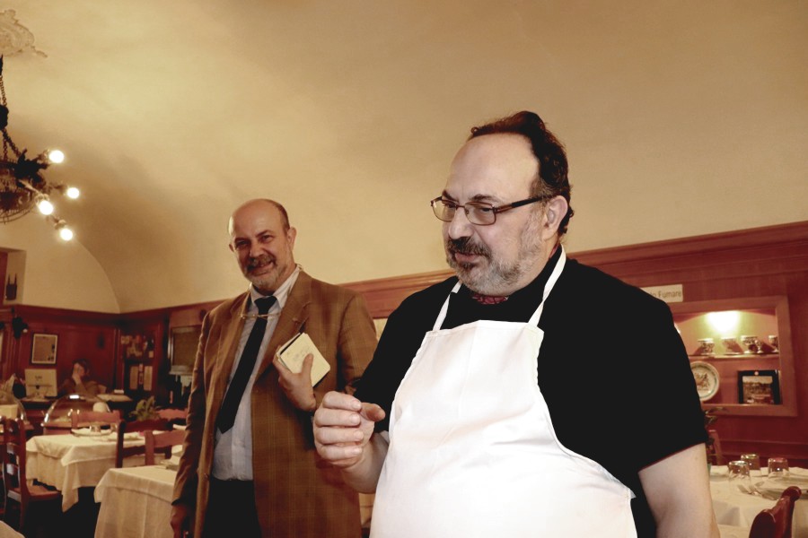 Foto 15/45 - Elio Mariani impegnato al carrello dei formaggi. Sulla sfondo la sorella Marina.