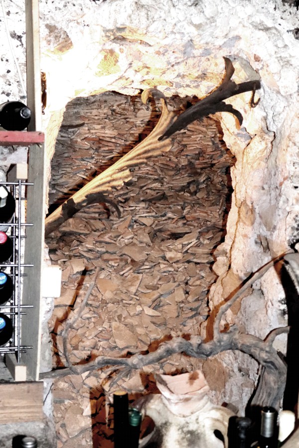 Foto 29/45 - La parete di fondo della cantina. Anche qui, ben visibili, in alto, i cocci del Monte Testaccio