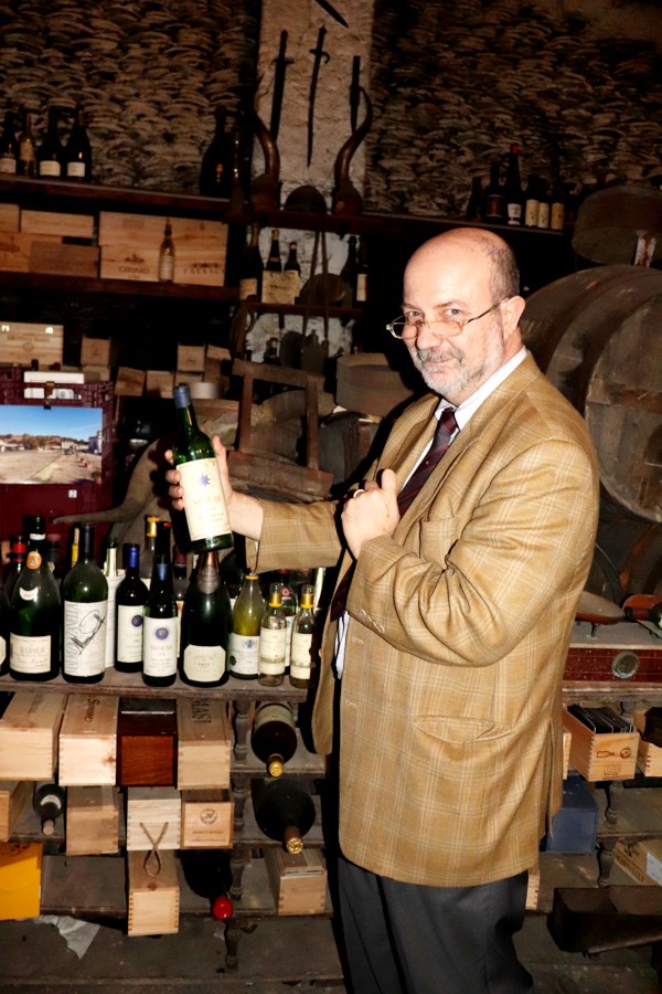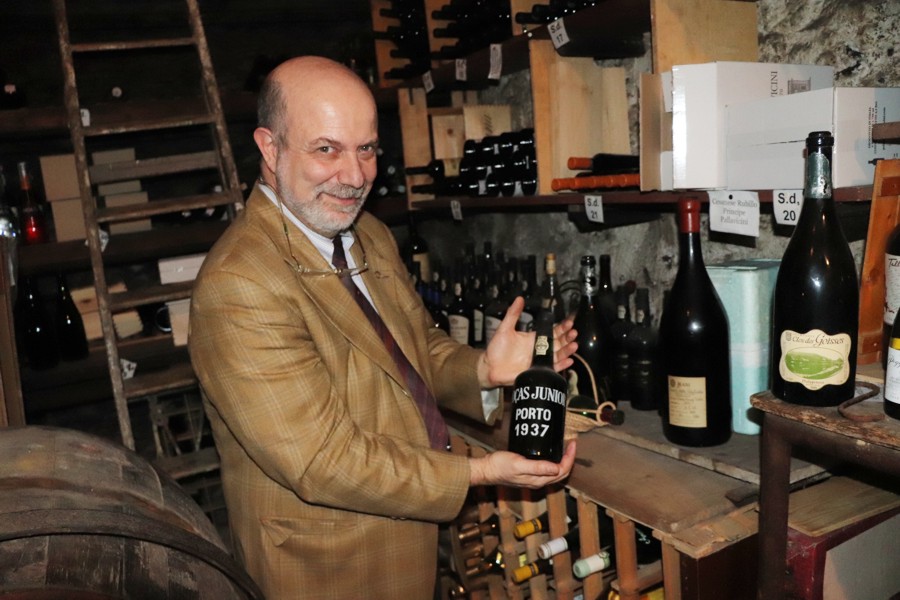 Foto 30/45 - Francesco mi mostra una bottiglia di Sassicaia del 1968. Vicine ci sono anche quelle del 1978 e del 1985.