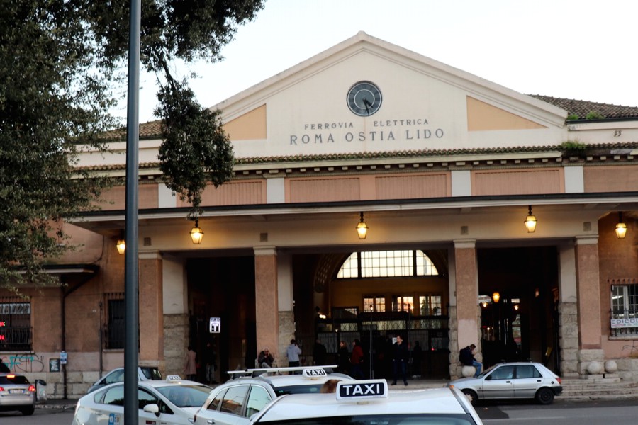 Foto 45/45 - La stazione ferroviaria Roma - Ostia Lido a Piazzale Ostiense. In basso il taxi che prenderemo per tornare a casa.