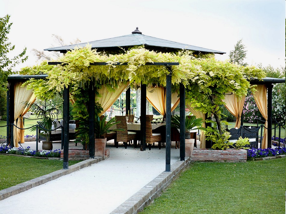 Foto 27/55 - Dal nostro tavolo vediamo, nel giardino, questo gazebo che, vista la grandezza del tavolo, deve essere riservato per qualche cerimonia.