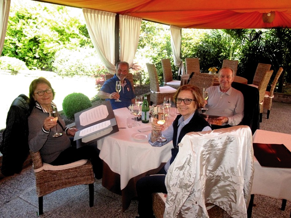 Foto 28/55 - Eccoci tutti e quattro fotografati dal nostro garbato cameriere mentre facciamo un brindisi con un calice di Ribolla Gialla.