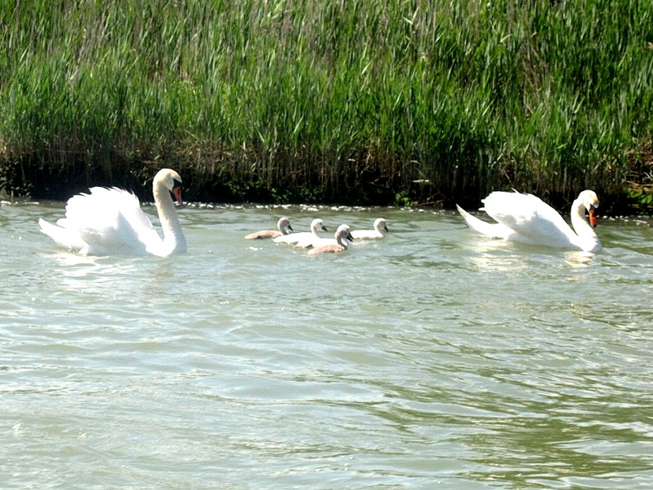 Foto 42/55 - Una intera famiglia di cigni a passeggio sul Piave.