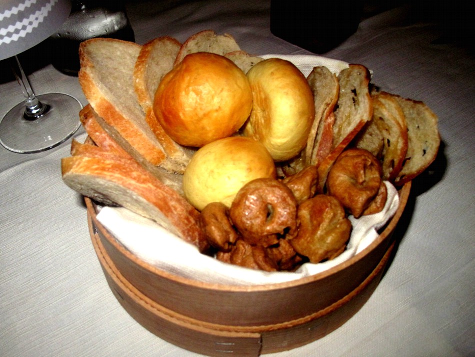Foto 60/65 - Il bellissimo cestino del pane, contenuto in un setaccio da farina dei tempi andati.