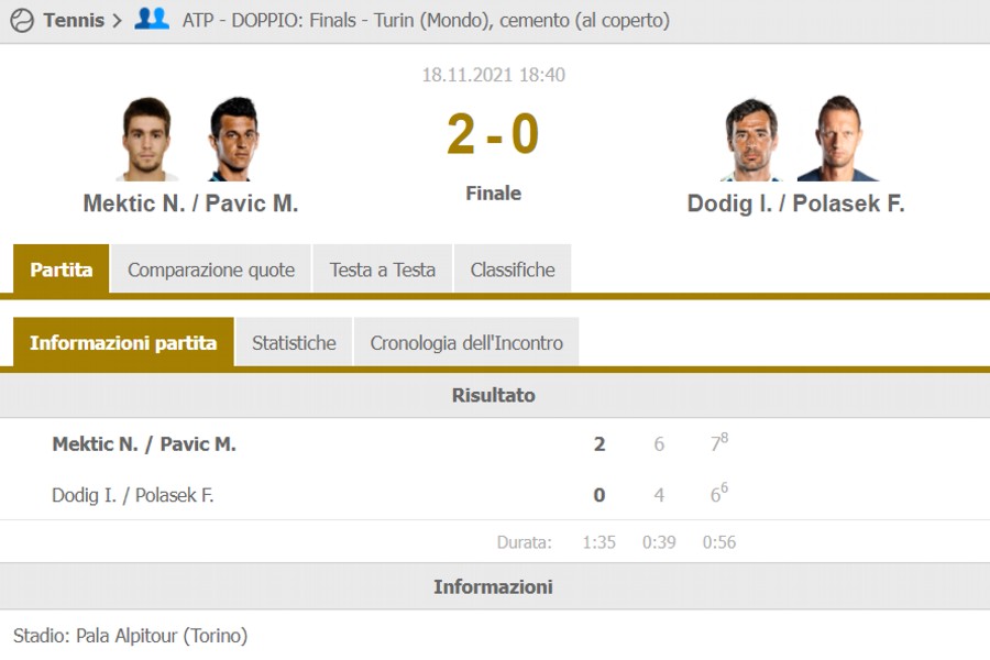 Mektic N. - Pavic M. / Dodig I. - Polasek F. : 2-0