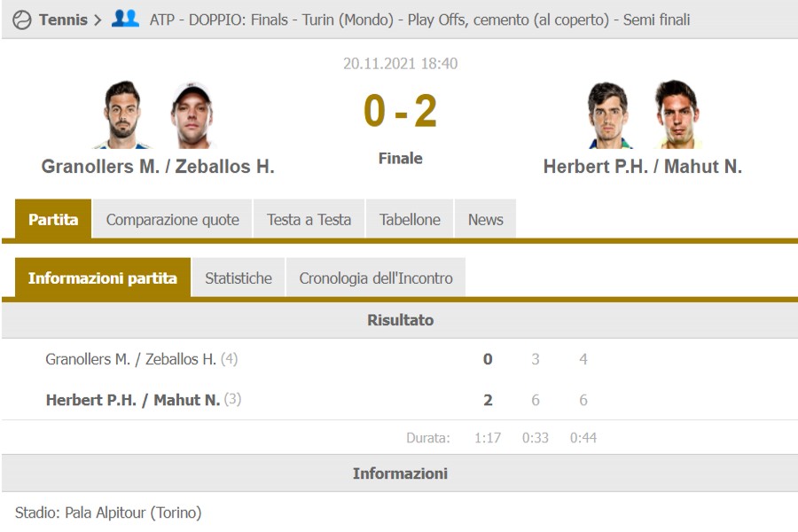 Granollers M. - Zeballos H. / Herbert P. - Mahut N. : 0-2