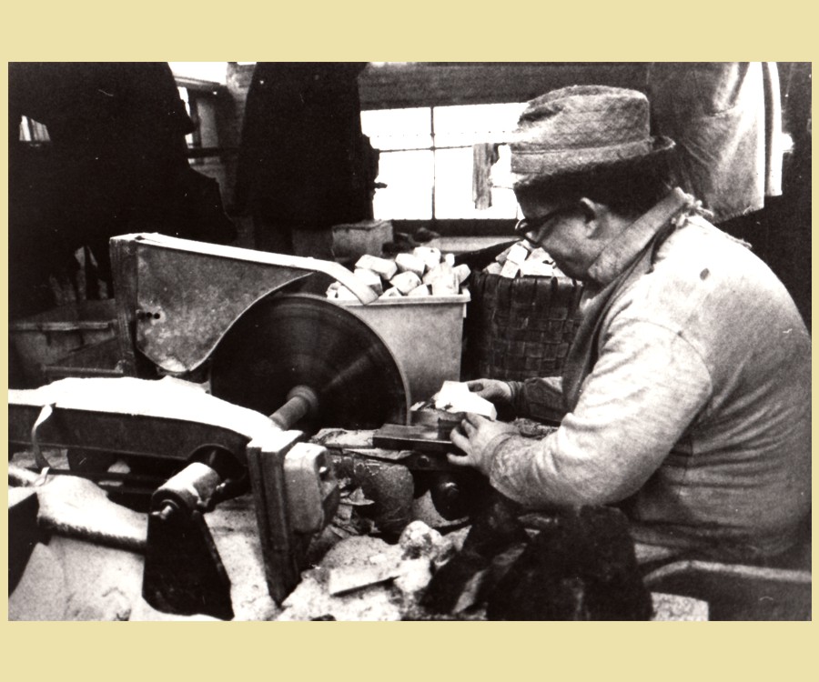 Foto 2/25 - In questa e nelle tre foto seguenti il processo di formazione della pipa. Qui il cioccaiolo mentre analizza un ciocco di radica per valutarne