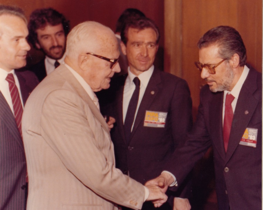 Foto 6/25 - Fausto Fincato presenta al Presidente Pertini i membri del Comitato Organizzatore. Nella foto il Presidente stringe la mano a Toni Di Rossi (io) insieme ad Alberto Acciari e Xxxxx Yyyyy.