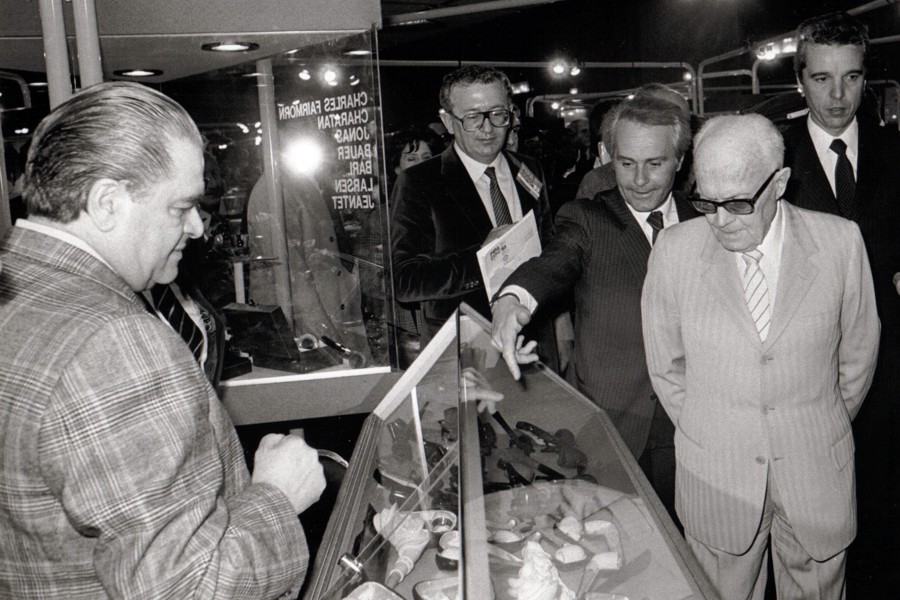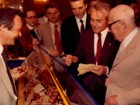 Foto 10/25 - Durante la sosta presso un altro stand Fausto Fincato mostra al Presidente una bella pipa di radica.