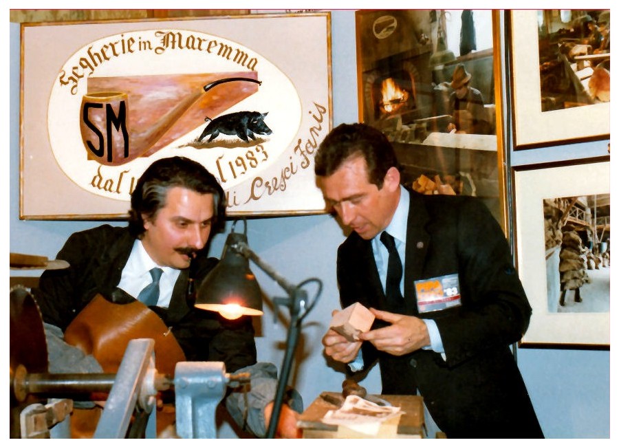 in una mostra di pipe, insieme agli artigiani creatori, c'erano gli altri interpreti di questa favolosa attività: i cioccaioli e i segantini.