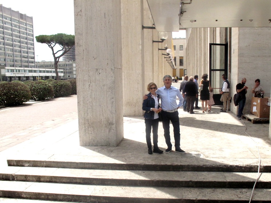Fuori dal Salone delle Fontane, salutiamo Nicoletta che si sta riposando sulla scalinata, chiacchierando con la sua amica Monica, recente partecipante,