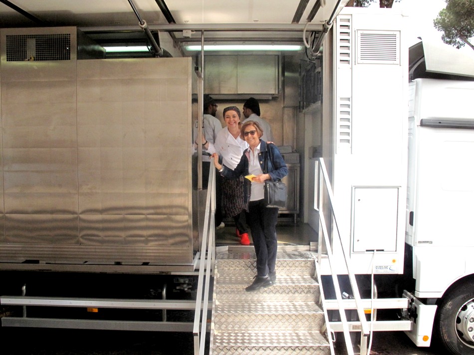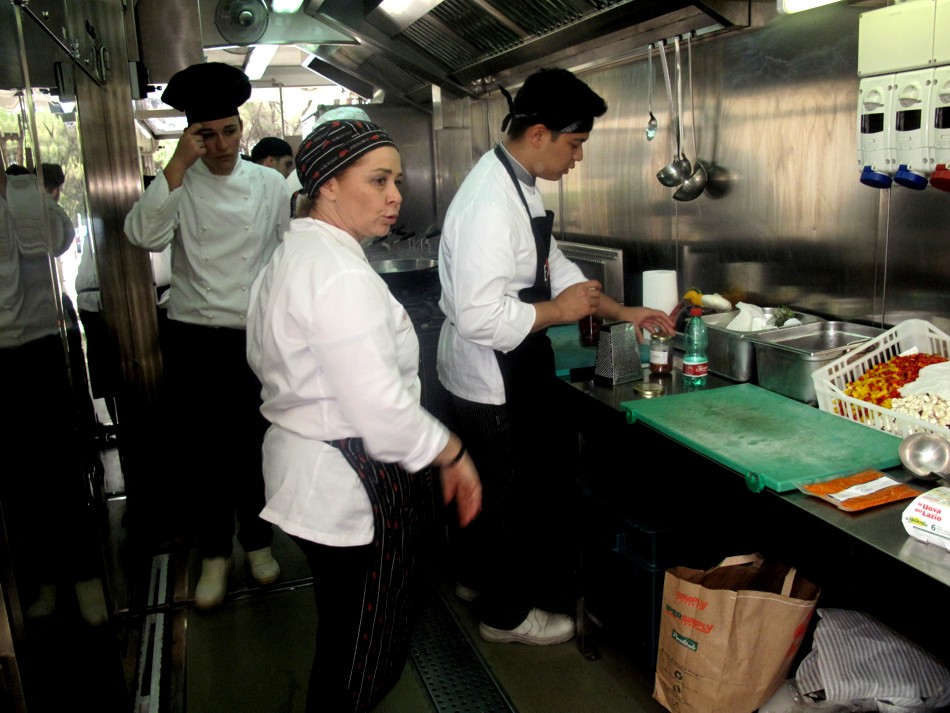 Nicoletta è nel van adibito a cucina per la manifestazione e coordina la troupe di allievi della scuola alberghiera.