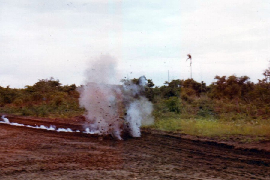 Foto 20/50 - La deflagrazione che costituisce l'atto finale della dimostrazione dal vero dei lavori in atto sul territorio.