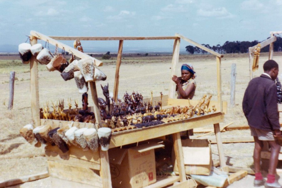 Foto 1/23 - Siamo a Nanyuki, una zona dove si fermano tutti i turisti; infatti la prima cosa che si vede è una "bancarella" con i souvenirs.