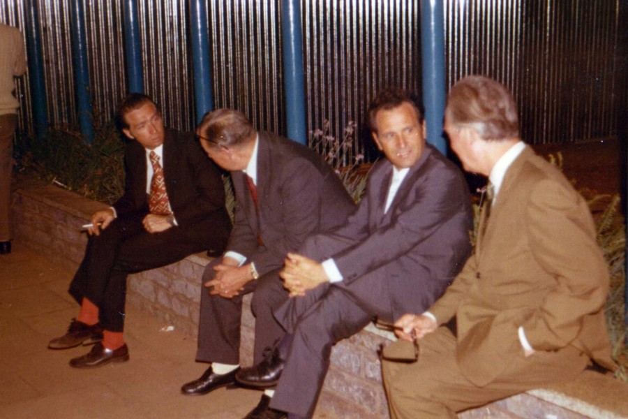 Foto 21/23 - Aeroporto di Nairobi, pronti a partire. Il gruppo dei REPU: il sottoscritto, Corrado Lodi Focardi, il capo delle Relazioni Pubbliche dell'ENI e il mio collega Maurizio Gonzaga.