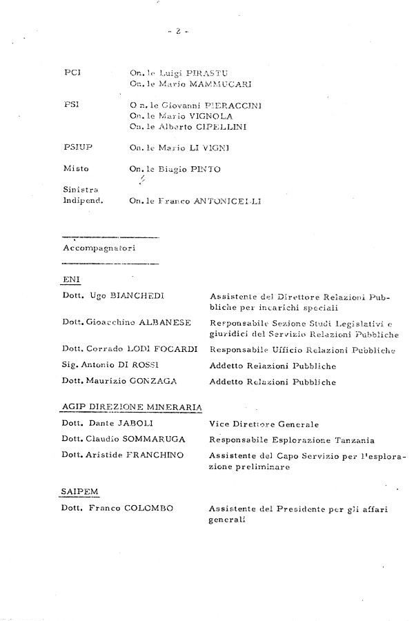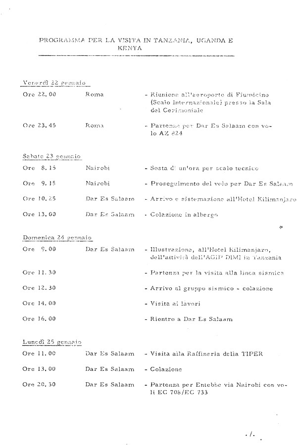 faranno a Kunduchi dove L'Agip Petroli sta effettuando delle perforazioni.