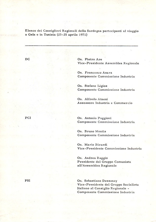 Il mio incontro con la delegazione parlamentare sarda avvenne all'aeroporto di Catania, pronti per partire per la Tunisia. La parte di viaggio
