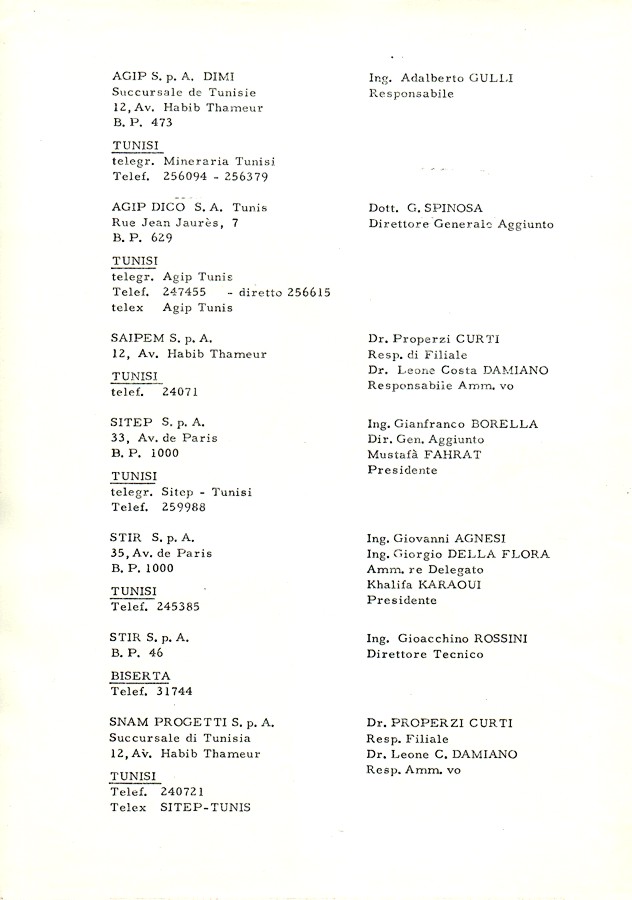 Foto 7/25 - Elenco dei rappresentanti del Gruppo ENI in Tunisia che prenderanno parte ai vari incontri con la delegazione.