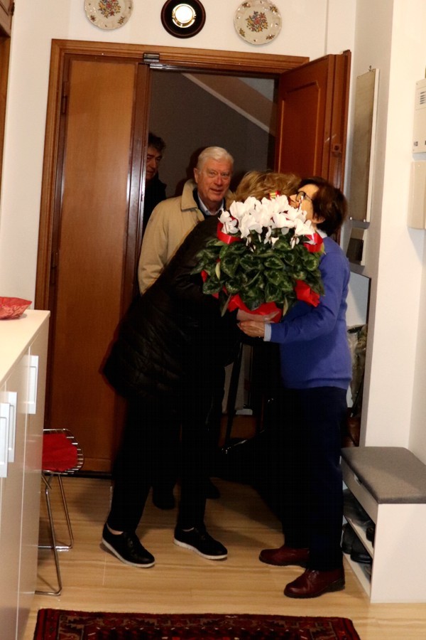 Patrizia ha omaggiato Fausta con uno stupendo vaso di ciclamini bianchi mentre Gabriella, che mi aveva avvertito, ha portato un dolce per il dessert che pare si chiami Mont Blanc anche se