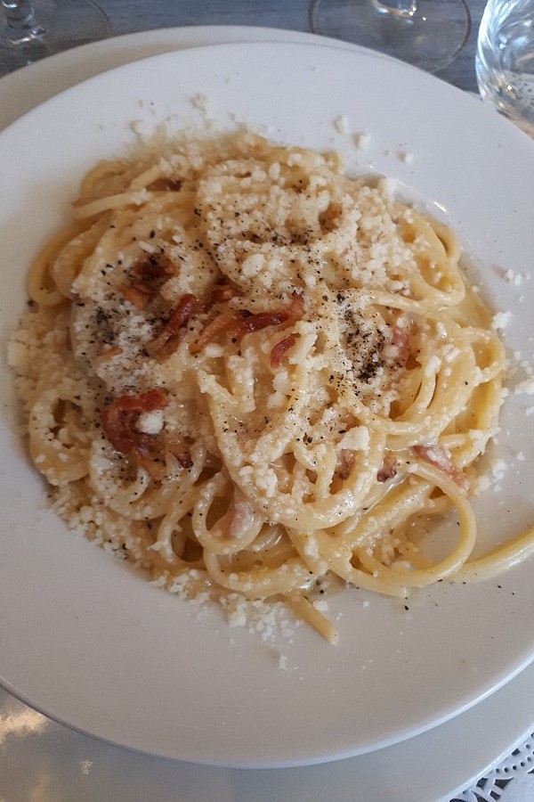La Carbonara, un altro piatto principe della gastronomia romanesca, uno dei fiori all'occhiello dell'Osteria di San Cesario.