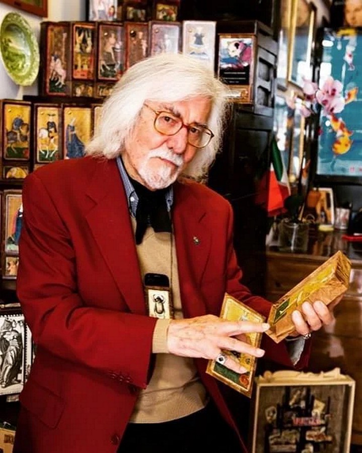 Osvaldo Menegazzi (6.3.1930 - 13.12.2021) proprietario del Meneghello, uno storico laboratorio dove l'artista ha prodotto, in tanti anni di lavoro, tanti mazzi di carte di pregio, soprattutto