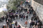 La gente si accalca fuori dalla chiesa in attesa che la cerimonia sia terminata.
