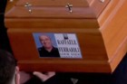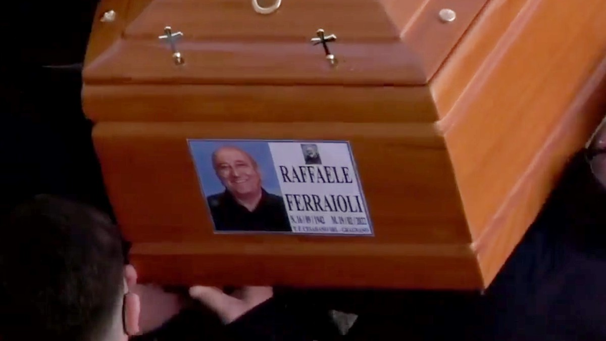 Un primo piano del feretro con la data di nascita e quella di morte di Raffaele Ferraioli.