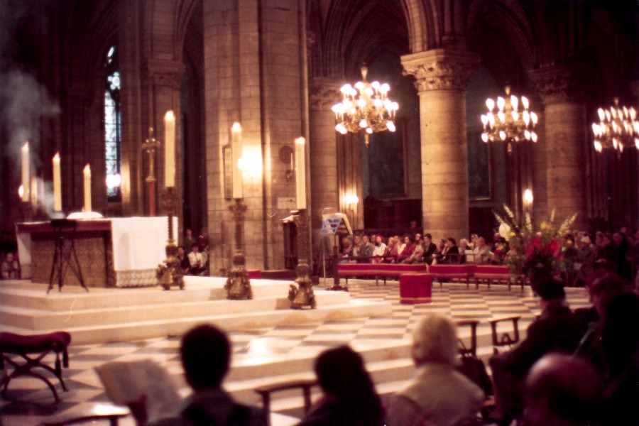 Notre Dame de Paris. All'interno durante una funzione religiosa.