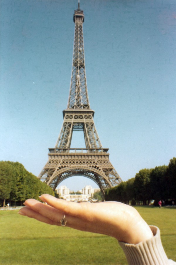 Difficile resistere alla tentazione di reggere la Tour Eiffel con una mano!
