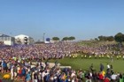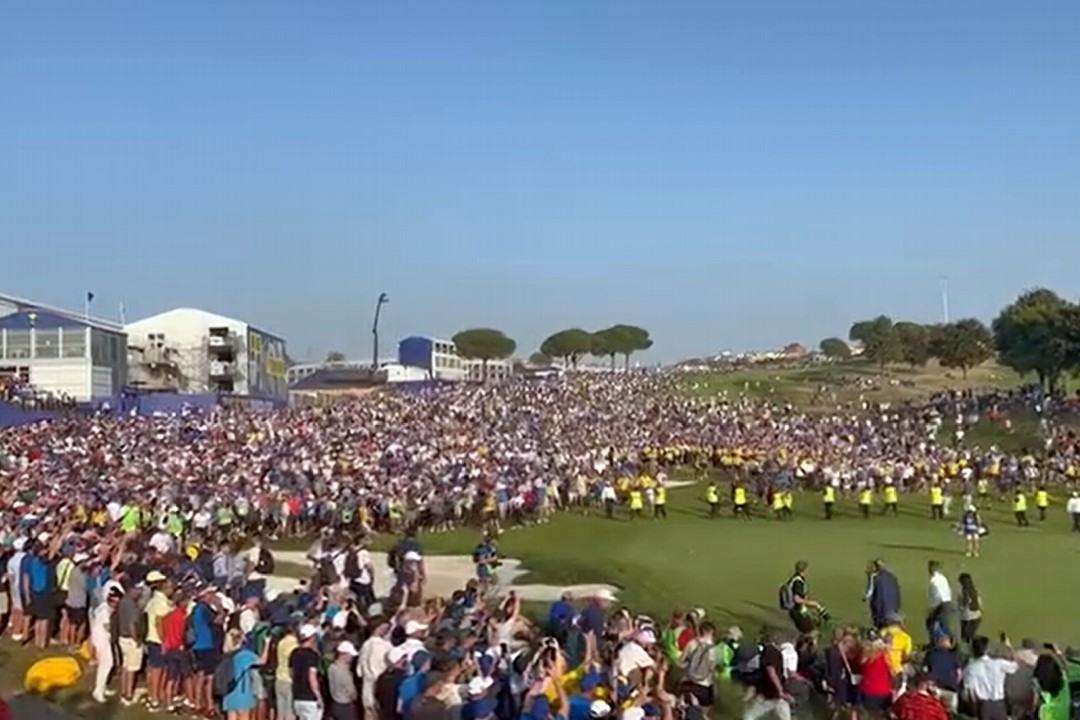 Lo spettacolo del pubblico dietro il Tee della 1 del campo del Marco Simone Golf & Country Club di Guidonia (Roma).